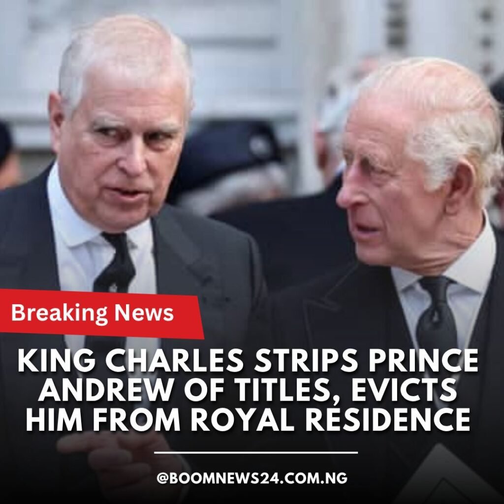 • King Charles Strips Prince Andrew of Titles, Evicts Him from Royal Residence